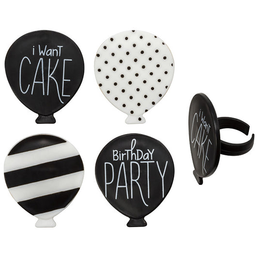 Black & White Birthday Balloon Cupcake Toppers, 6 pack