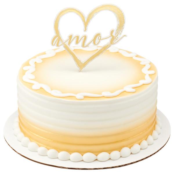Top off your design with a beautiful, gold Amor layon. Clear plastic with gold foil adds a touch of shine and elegance.