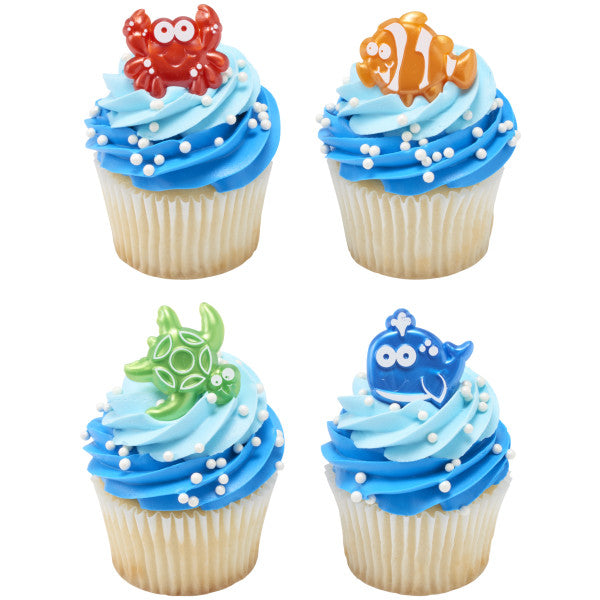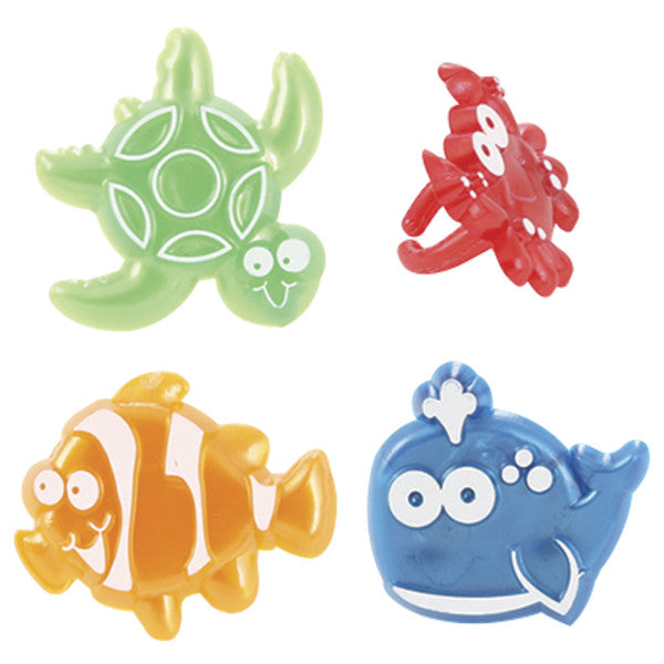 Bring these ocean friends to your dessert display. These assorted rings feature turtles, whales, fish, and crabs. Great for cupcakes, donuts, or even finish off the look of a cake.