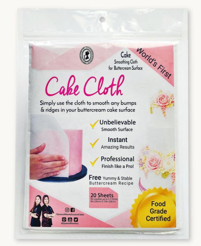 Use this cake cloth to smooth the sides of your buttercream cakes. Works best on frostings that form a crust, such as buttercream. Use on frosting before it forms a crust. Each cloth can be used 3-5 times by washing in warm water and hanging to air dry. Includes buttercream recipe on package. Sheets are packaged in a resealable plastic bag.