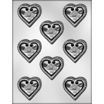 Chocolate Mold Heart w/Flowers Chocolate Mold, 2 1/8"