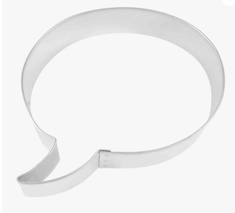 High-quality steel conversation bubble 4.25" cookie cutter. Hand wash and dry thoroughly before storing.