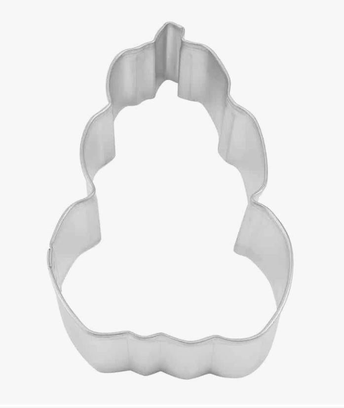 High-quality steel stacked pumpkin 4" cookie cutter. Hand wash and dry thoroughly before storing.